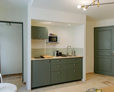Un studio de 30m2, avec entrée indépendante sur la rue mais relié à la maison via l'escalier du rez-de-chaussée, peut venir compléter l'offre de couchage de la Maison Gilberte.